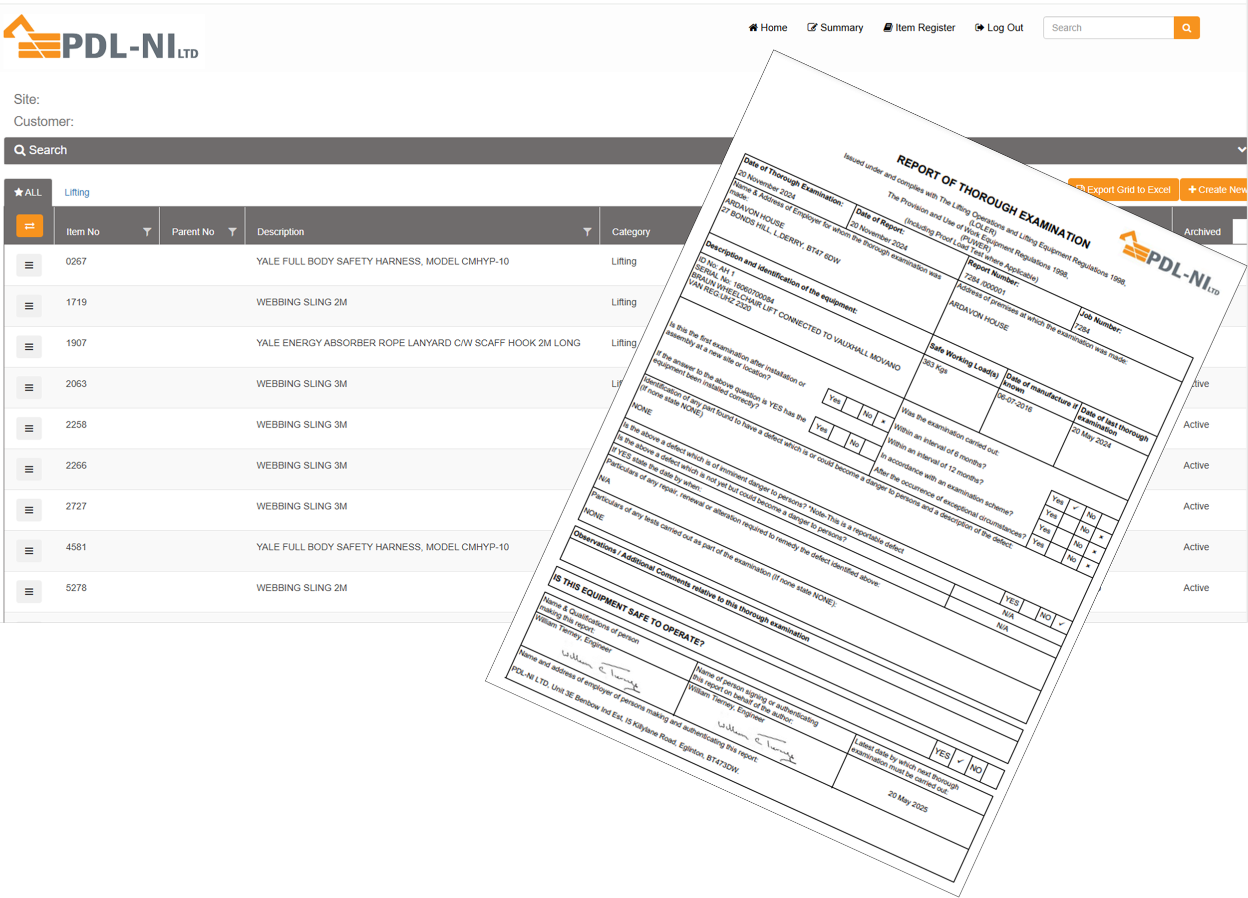 PDL further expands efficiency in the market place via the use of our online Certification system which gives all our clients unlimited access to their LOLER certificates at anytime by accessing their individual company portal free of charge.